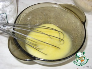 Растереть желтки добела, добавляя сахарный песок.