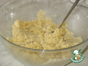 Маргарин перетереть с просеянной мукой до состояния мелкой крошки.