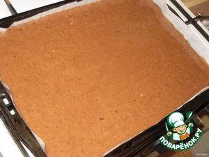 Лист выстелить бумагой. Вылить тесто, равномерно его распределить.