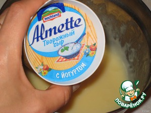 А вы откуда? в Росии живете? У меня на фото этот сыр есть, посомтрите внимтаельно, Альметее, также использую Крем-бонжур, без всяких добавок, а в идеале это Маскарпоне или Филадельфия, но они довольно дорогие для будничной выпечки!