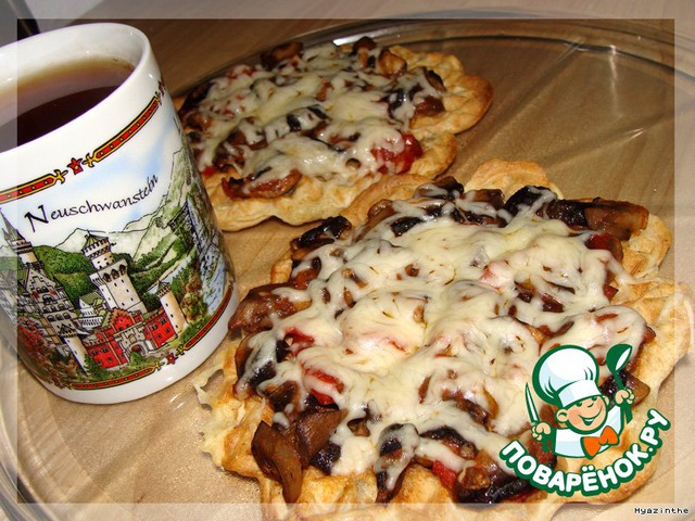 Немного необычно, но вот нашла я на немецком сайте такие вафли и попробовала. Интересно, можно иногда для разнообразия и такие мини-пиццы делать. Начинка может быть любой, я делала грибную.
