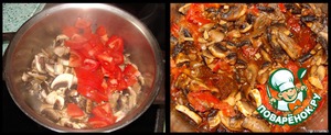 • Для начинки потушила шампиньоны и помидоры с чесноком и зеленью.