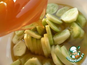 Огурцы очистить от кожуры и нарезать кружочками... Ну или кубиками ;-) , как вам больше нравится...