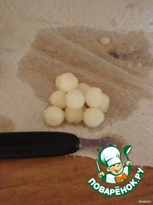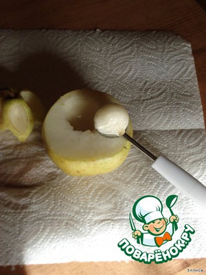 Ложкой - нуазеткой вынимаем мякоть груши в виде шариков.
