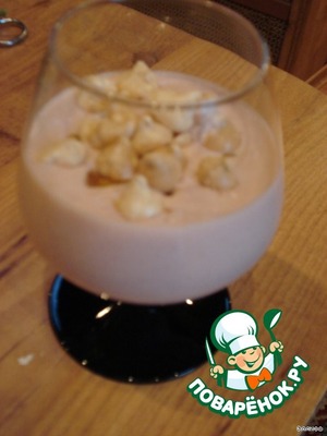 Клубнику растираем до пюреобразной консистенции, оставив немного ягод для украшения, добавляем коньяк.