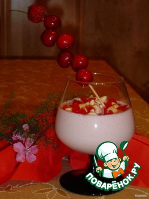 На шпажку нанизываем черешни и клубнику, этим украшаем крем.