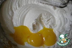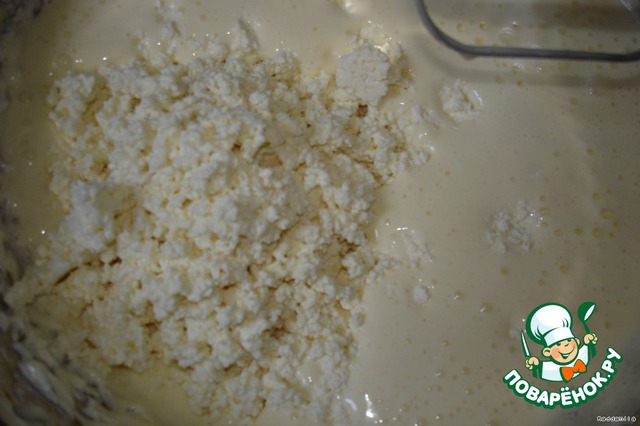 И по чуть-чуть муку. Тесто должно получится как густая сметана. Количество муки зависит от качества творога.