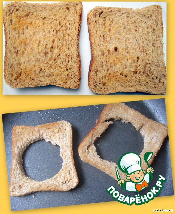 В тостах или другом виде хлеба вырезать круглые отверстия.