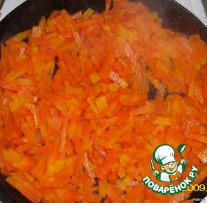 Варим морковь и режем ее соломкой, можно полукружками (кому как нравится)