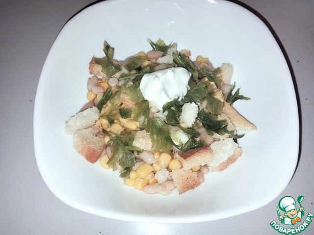 - в отличие от вашего рецепта, наоборот, сухарики всыпаем непосредственно перед подачей чтобы таки не размякли. Пока перемешаешь, да позовешь к столу (3-5 минут) уже успевают напитаться, но еще хрустящие, что принципиально я считаю. Потом спустя пару часов тоже не плохо (если доживет, ха-ха), но уже не то.