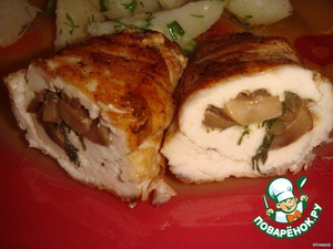Рецепт «Куриные рулетики с грибами и сыром»: