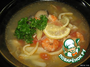 Рецепт «Суп с томатами, форелью и морепродуктами»: