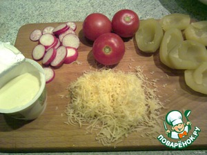 Закусочка очень простая и легко готовится. Картошка, селедка, помидор, редиска и сыр - чудное сочетание. Такое блюдо подойдет как для будничных дней, так и для праздника. Угощайтесь
