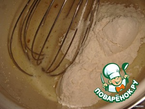 Готовим крем.Яйца взбиваем с сахаром венчиком,добавляем муку,тщательно размешиваем,чтоб не было комочков.