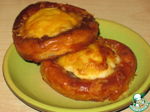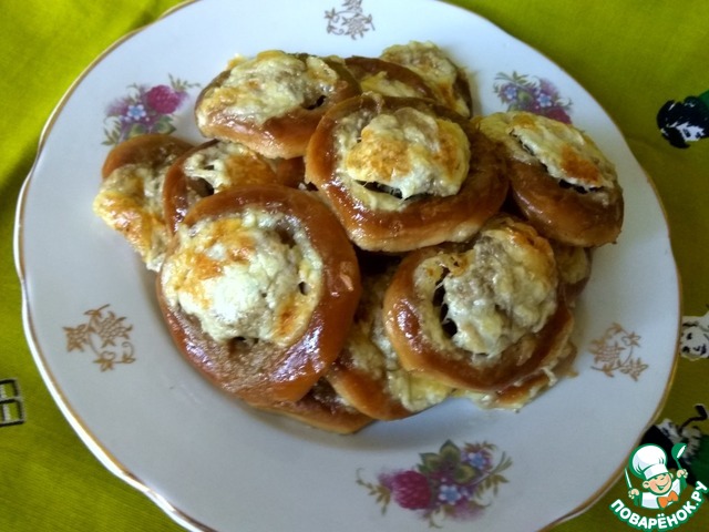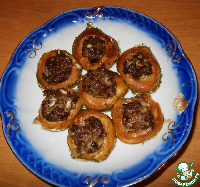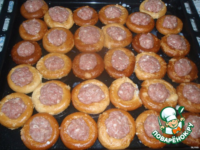 прокрученный на мясорубке или порезанный лук, фарш и немного воды хорошо вымешать,заполнить этой смесью сушки