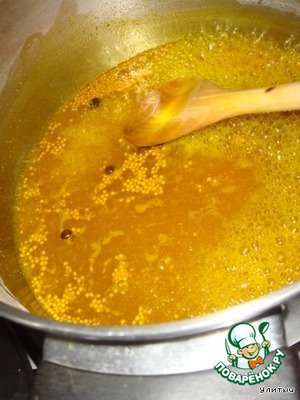 Готовим маринад. Все ингредиенты для маринада сливаем, ссыпаем в кастрюльку. Доводим до кипения.