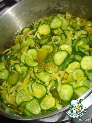 В закипевший маринад добавляем отстоявшиеся 4 часа огурцы и провариваем их в маринаде пару минут. Даем остыть.