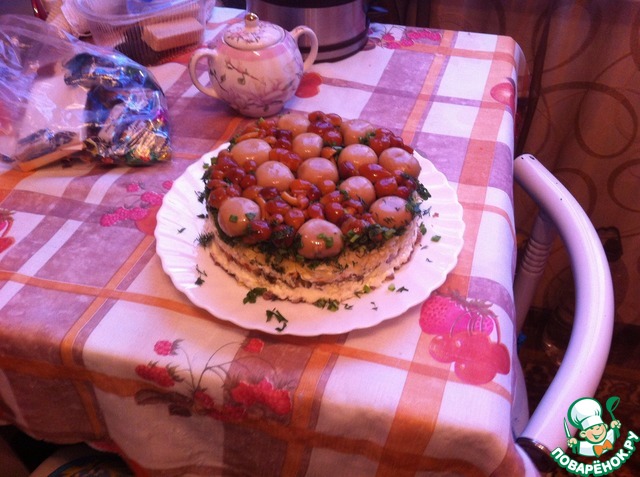 Очень вкусный, сытный и красивый салат !Правда, с ним надо немного повозиться, но оно того стоит! Советую попробовать!