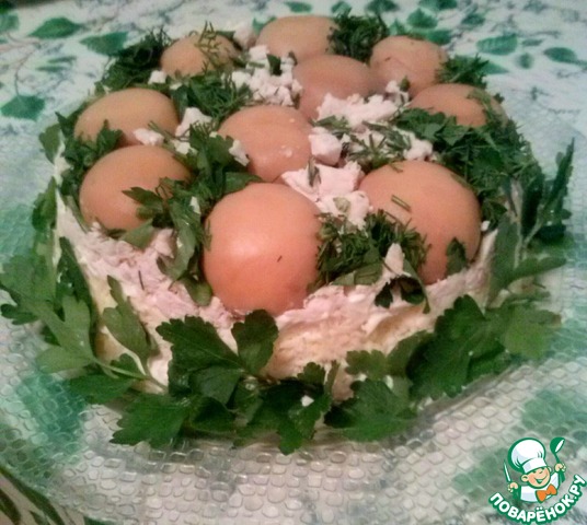6 слой – нарезанная кубиками вареная куриная грудинка , майонез;