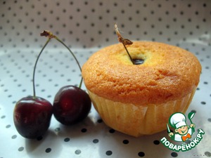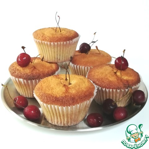 Такие кексы будут замечательны на вкус с любой ягодой, а черешенки с хвостиками выглядят озорно и весело))
