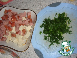 Тесто: в кефир добавить взбитые яйца, соль, соду и муку. Замесить тесто.