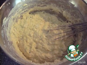 все хорошо перемешиваем. добавляем муку с разрыхлителем.