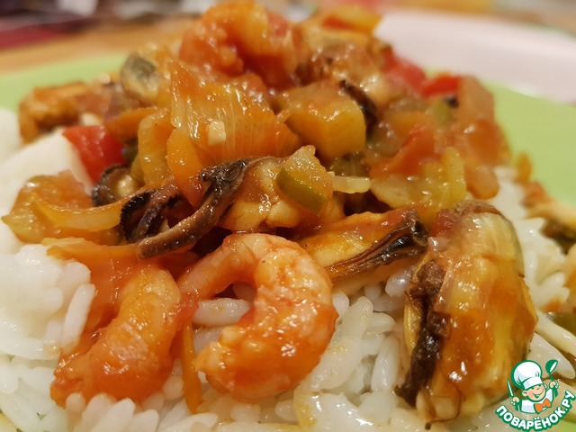 Ингредиенты для «Креветки и мидии с томатным соусом»: