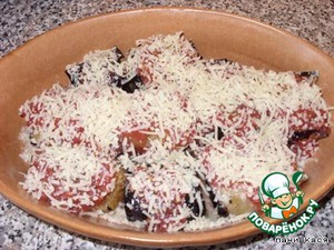 Полить протeртыми помидорами и посыпать тeртым сыром.