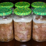Время готовки продукта зависит напрямую от мяса (для курицы достаточно 1 часа, максимум 1,5), для свинины, телятины и молодого барашка от 1,5 до 2 часов, для говядины не менее 3 часов) - и заметьте! - отсчёт идёт от момента достижения нужной температуры! Если у кого уж совсем дедовская печь, то тоже есть выход (эхма, где наша совковость пропадёт?) - вы увидите, как мясной сок закипит прямо в банках, вот отсюда и поехали...
