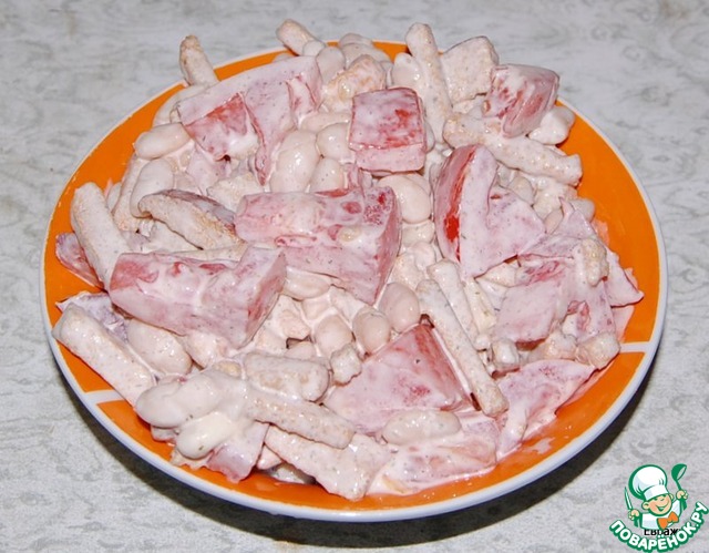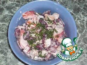 Фасоль откинуть на дуршлаг, слить воду, переложить в салатник