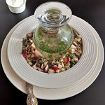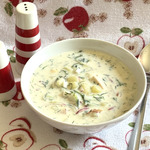 В 1 литре воды размешать сметану, добавить и перемешать с нарезанными продуктами, затем добавить остальную воду до нужной густоты.
