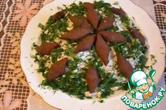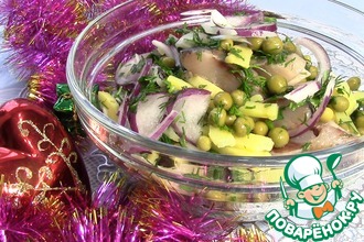 Захотелось печени трески, но стандартная помазка для бутербродов уже надоела. В результате эксперимента получился этот салатик