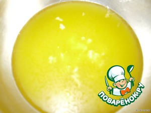 Сливочное масло растопить в отдельной емкости, слегка остудить и выдавить в него чеснок, перемешать.
