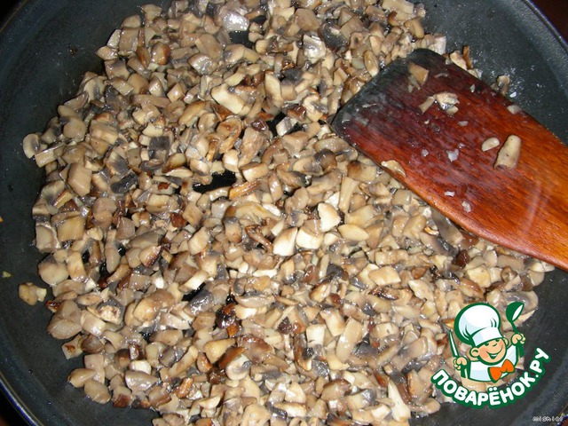 Грибы мелко порезать и обжарить с луком. (про лук я благополучно забыла, все равно получилось очень вкусно)