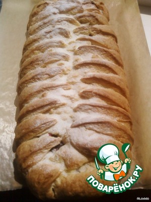 Вот и наш готовый пирожок! Посыпать его густо сахарной пудрой можно с ванилином.