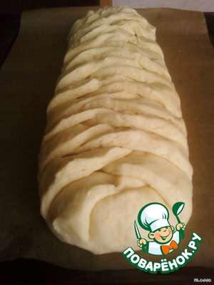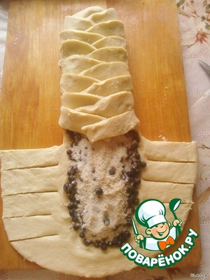 Раскатать тесто и вдоль краев нарезать полоски шириной 2 см длинной 8см