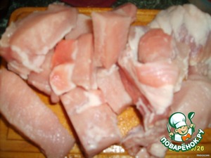 Мясо режем на средние кусочки.