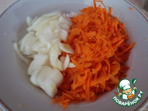 Почистить морковь,натереть на терке. Репчатый лук почистить, порезать кубиками. Лук и морковь потушить на растительном масле до полуготовности.