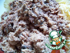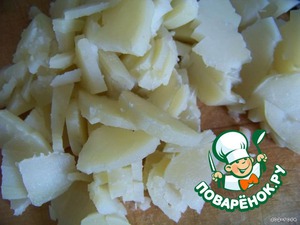 - Сыр твердый (в идеале – с плесенью, типа дор-блю… можно заменить на любой другой, лучше острый, типа «Российского») — 100 г