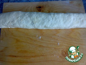 Затем все скручиваем в рулетик. Хорошо проминаем весь рулет.