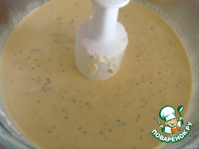 Добавить кефир+ 1 ч. л. соды и ванилин, всё хорошо перемешать