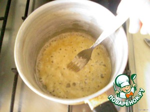 А теперь соус - в кастрюльке растапливаем масло, всыпаем муку и жарим 1 минуту, помешивая и постепенно вливая молоко. -