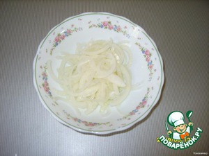Головку лука почистить, поерзать полукольцами, затем выжать сок половинки лимона и оставить на время пока готовишь салат.