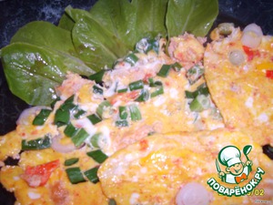 А яичница получается так - разогреваем масло в сковородочке, выкладываем ложкой икру (по вкусу), чуть обжариваем, заливаем взбитыми яйцами.
