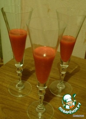 • Клубнику взбиваем в блендере (спасибо родному сайту!!!) с сахаром и разливаем по бокалам...