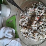 Предлагаю еще один вариант салата из крабового мяса или палочек. Вроде бы такого нет на сайте. Салатик получается очень вкусный.