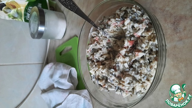 Добавить соль и майонез. Все хорошо перемешать. Салатик готов. Приятного аппетита!