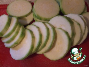 Кабачки почистить и порезать кружками (количество кружков должно делить на два).