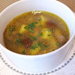 - Грибы (замороженные, Белые желательно готовить отдельно, суп будет прозрачный) — 250 г