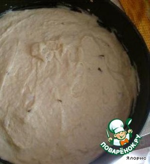 ...измельчаем миндальные орехи, чтобы кусочки были не совсем мелкими, добавляем в тесто.Тесто выкладываем в смазанную разъемную форму.